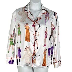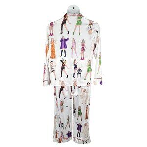 Sheshow NWT Womens M Satin Pajama Set Swifty Fashion Print Show Flirty Whimsical Fun Lounge Comfy