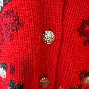 Keywords: Jones New York, Cardigan, Sweater, Wool, Shetland Wool, Embroidered, Floral, Red, Vintage, Retro, Small, Statement, Cozy, Knitwear