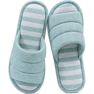 Shevalues Women Size 8.5 Bue White Striped Open Toe Slide On House Slipper Shoes