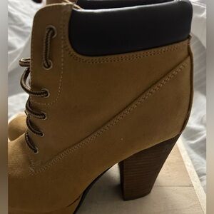 Elevate your shoe collection with these chic ankle booties from Shi By Journey. The tan nubuck upper material is accented by a stacked high heel, making these boots perfect for travel, casual outings, or business meetings. The lace-up closure ensures a secure fit, while the ankle shaft style provides a stylish touch.