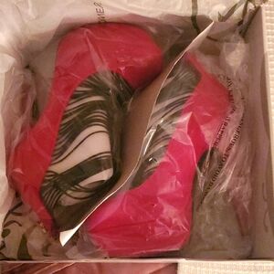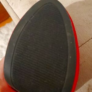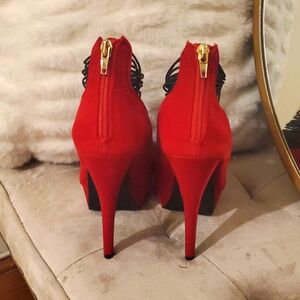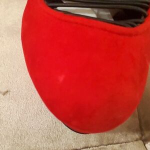 Step out in style with these elegant red heels. Perfect for any occasion, these shoes offer both comfort and sophistication with an elegant black elastic front, Super Stylish and Gorgous❣️ Basically Brand New without tags, one tiny mark on right front, can't even notice it. as shown in picture, it definitely could be smoothed out. Bottoms are perfect and Pristine❣️