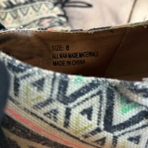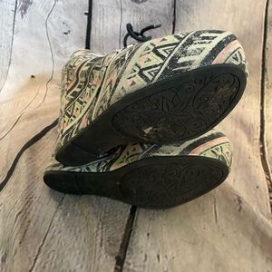 Shi by Journeys Neon Tribal Print Beige Canvas Lace Up Y2K Wedge Booties Sz 8