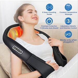 Expert-level neck and shoulder massager perfect for relaxation. • Easy & Safe to Operate with Three Custom Speed Modes Back massager-one simple press on the power button to enjoy real comfort and relief. Neck massager with a unique and flexible strap, you can easily adjust. Three custom speed modes. Shiatsu neck and back massager overheat protection and 10 minute auto-shutdown feature ensures safe use (Needs to be connected to power supply to use & can be turned off manually). • Deeper Kneading Massage Neck massager uses eight bi-directional rotation kneading massage heads. Back massager also capable of massaging in two directions if needed, with a simple one-button switch to choose which one. As you would expect from any back massager, the back and neck massager can also massage your back, waist, limbs, and shoulders along with being very effective at providing your neck with the comfort. • Heating Function It is important for any neck massager you might consider buying to be not only easy to operate but comfortable as well. Our Shiatsu neck Massager Pillow has this feature. Neck massager is lightweight and comfortable to wear for a long time. Thanks to its built-in heating function, neck massager pillow for home, office, car and travel use, it has AC adapter and car adapter for convenience.