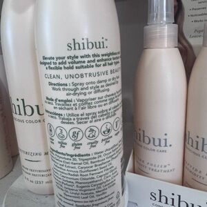 Shibui texturizing mist for hair care. Cream color bottle with spray nozzle. Shibui texturizing mist