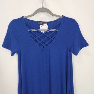 Shiela Rose Criss Cross Neckline Jersey Dress in Blue - Size Small