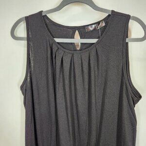 Shiela Rose Sleeveless Pleated Front Jersey Blouse Keyhole Back in Black Size 2X