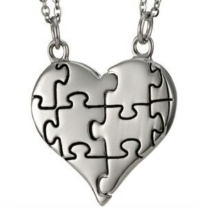 Friendships or family bonds will be strengthened with the sharing of this beautiful two-piece stainless steel split heart necklace. This necklace features a heart pendant with a puzzle piece split, so one half can be worn by each friend. Each side of the split contains the special verse from Genesis 31:49, which reads "May the Lord watch between you and me." The back side of the pendant has more jigsaw lines to mimic the look of a puzzle. The necklace measures 1.2 inches by 0.58 inches, and each side comes with a solid stainless steel link chain that is adjustable between 18 and 21 inches. This fashionable 2 piece heart necklace proves that no distance is too great for the love of friends and the protection of God.
