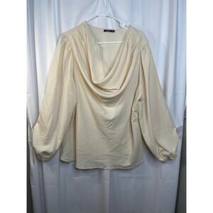 Shien Shn Curve blouse shirt top wome’s size 2x xxl plus size semi sheer ecru off white cream dress career wear
