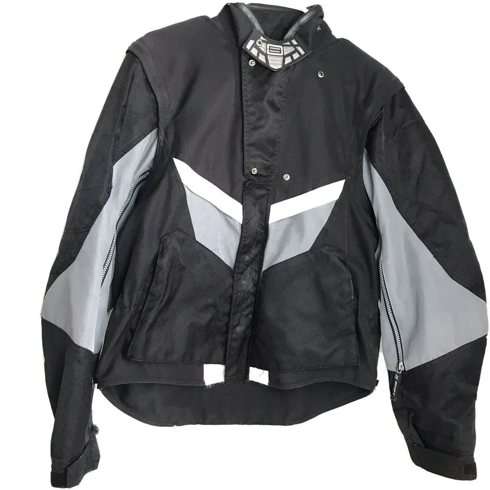 Super nice and heavy duty jacket. Good for biking and is protective. In great overall condition. A little bit of wear. (See pics)