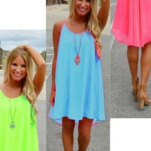 Chiffon Casual Dress. Double layer of chiffon. The blue is deeper than the pics on the dress form. On my dress form is 2X and dress form is 40" bust and 43" hips. The size that would swing freely would be if you wear 6 to 10. Length is 34".