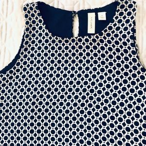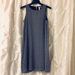 Size 6 Tacera Navy-White Pattern Sleeveless Shift Dress