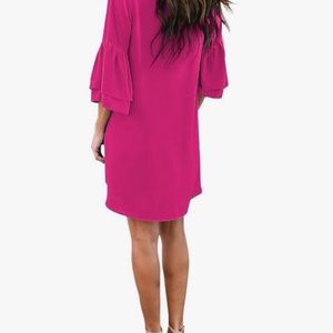 Band new with tags pretty pink dress that is knee length and has bell sleeves. Never worn. Purchased via Amazon.