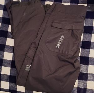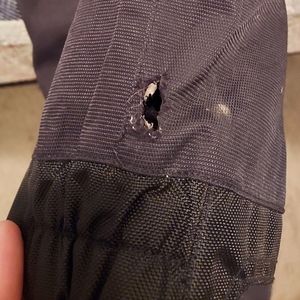 Shift riding pants. Men's size 32 (honestly should be labeled unisex in my opinion). Black. Gently used. Knee pads are intact. Small burn mark on bottom portion of leg (as pictured).