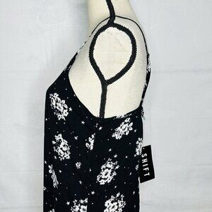 Shift Women's Rayon Slip Dress Size M Floral Sleeveless V-Neck Black White NWT, 100% rayon.