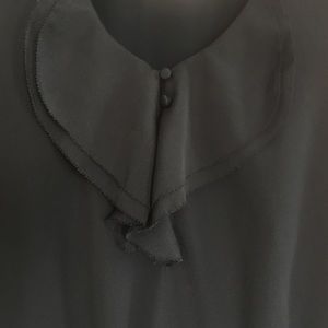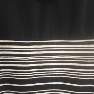 Black and white shift dress. Looks like a pencil skirt and blouse. Ruffle top, very flattering.