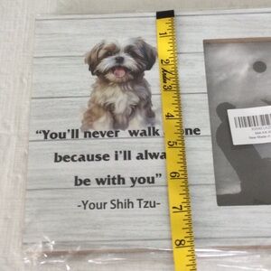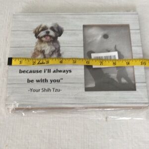 Display your cherished moments with this adorable Shih Tzu companion picture frame. The white and gray design adds a touch to any decor.