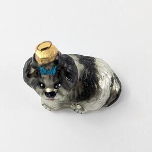 Shih Tzu Dog Handblown Glass Ornament Christmas Tree Black Silver Poland Glitter