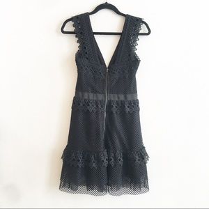 Shilla The Label Black Lace Mini Dress Element Net V-Neck Lined Sexy Size XS