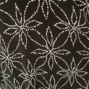 Thin 2-layer cotton fabric, with adjustable ties at the shoulders. Size M but may be tight in the bust for full-figured. Great cover-up for beach. (Hat not included)