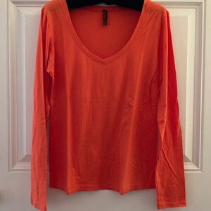 Shimera Long Sleeve V-Neck T-Shirt/Cotton Modal & Spandex/Bright Orange/Sz M/NEW