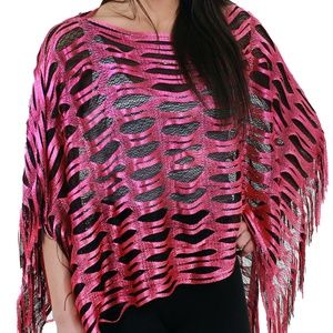 Metallic and see through beautiful blouse with fringes Silver, Fuschia and Gold NEW in a sealed bag