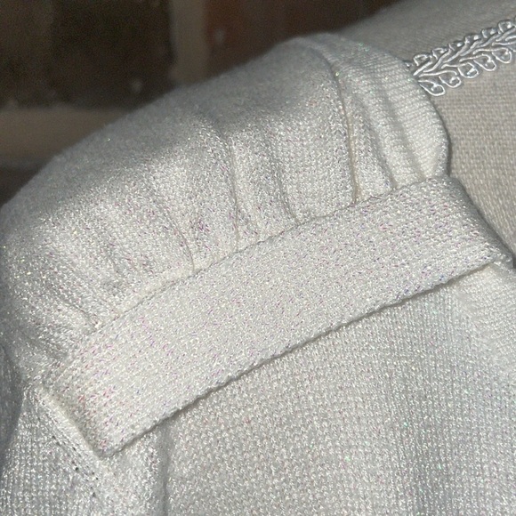 Shimmer White Sweater French Cuff Sleeves Wide Waist Metallic Thread XL
