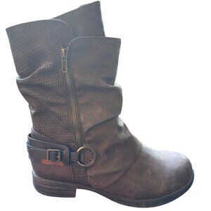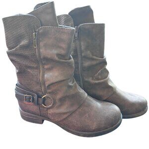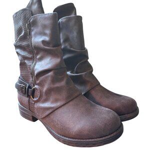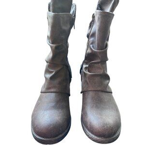 Shimmer by EDL Women Ankle Boot Brown Distressed Slouchy Ring Buckle 10M W/ Box