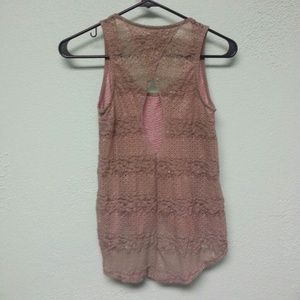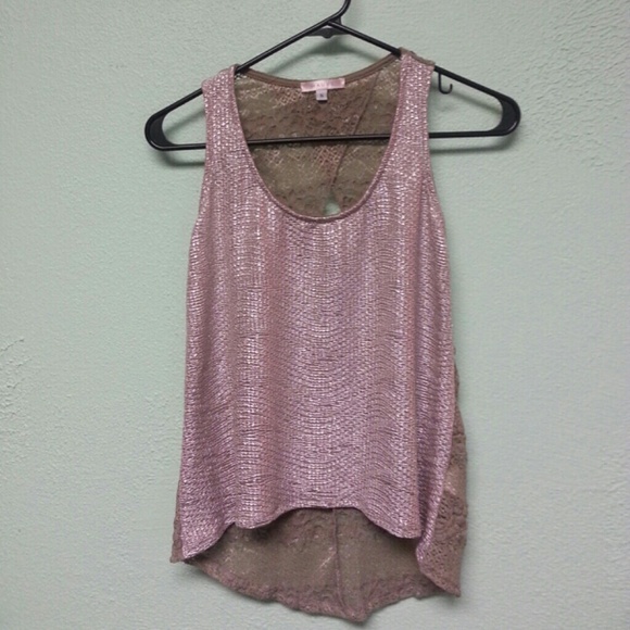 Shimmer pink tank top with cream lace back see through with cutout