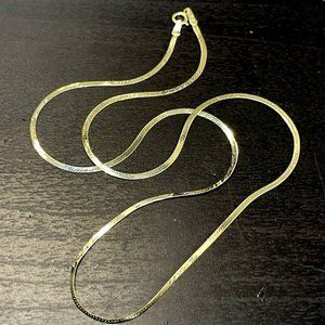 14K Solid Yellow Gold Herringbone 1.3mm Chain Necklace 16”