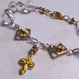 Shimmering Beaded Cross Bracelet | Mixed Metals | Faith Jewelry | 4 Larger Wrist