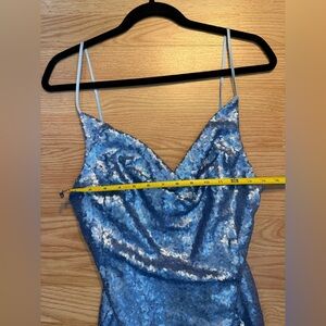 Dazzle in this shimmering blue sequin mini dress. Perfect for a night out.