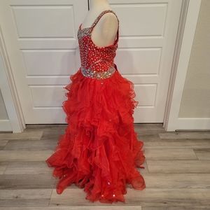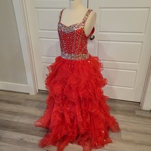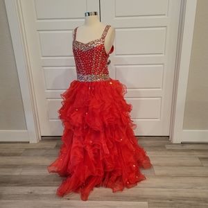 Shimmering Crystal Detailing Full Length Layered Skirt Red PROM/QUINCE