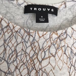 Fun cap sleeve top with awesome gold/bronze and grey pattern. The gold/bronze is shimmery. Flattering scoop neck in front and back. Like new condition, only worn a couple times.