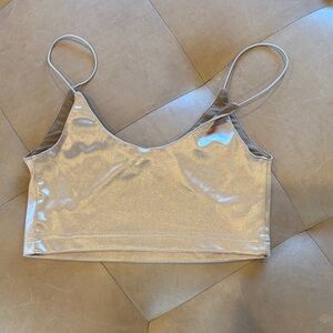Shimmering Rose Gold Crop Top Bra with Spaghetti Straps