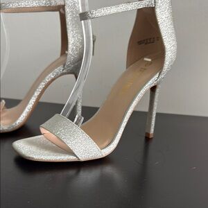 Dazzle in these shimmering silver glitter heels, perfect for elevating any ensemble. These have only been worn once.