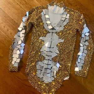 Shimmering Woman’s bodysuit with Gold and Silver Accents