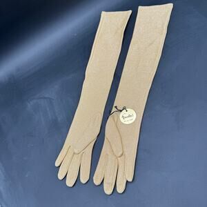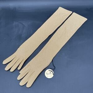 Shimmery Gold Gloves Vintage 50 60s Evening Dressy Mid-Arm Glittery Lame NOS