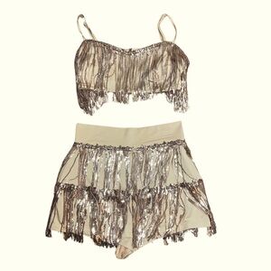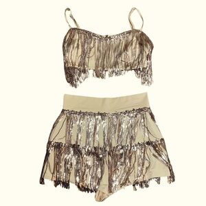 Shimmery Gold Two Piece Tasseled Set Size Medium