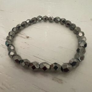 Shimmery metallic gun metal gray faceted beaded stretch stackable bracelet
