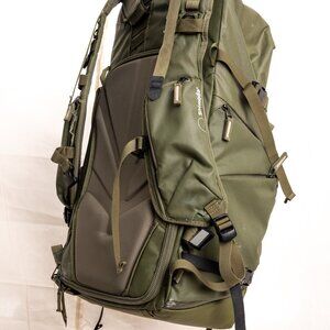 Do-anything, go-anywhere bag. This has been my go to for travel where I need to bring only one bag with clothing and a resonably large camera kit. Will hold a week of summer clothes and a "trinity" RF kit without a problem. Includes hip belt and original number of dividers. More signs of use than some bags, but still in great shape, these are bombproof bags