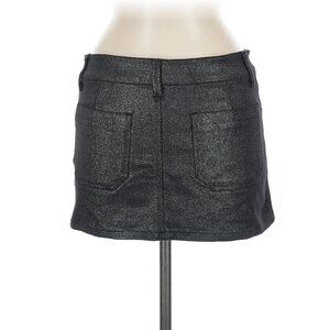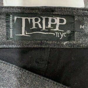 Hi, you are purchasing a skirt from Tripp NYC’s limited edition “Shine On Metallic” collection. It is gunmetal gray with an allover metallic sheen. This skirt is low-rise, a size medium, made of 97% cotton/3% spandex blend, and in excellent condition.