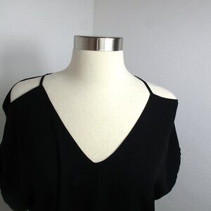 Shine Star Blouse Top Women Size L Black Cold Shoulder Sleeve Pullover Polyester