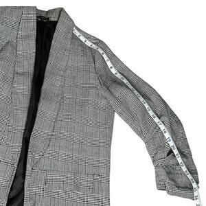 Shine Star Grey Micro Plaid Open Front Slouchy Blazer Functional Pockets Medium