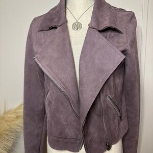 Purple stretchy suede jacket. Zipper pockets and zipper middle. Very comfortable in great condition.