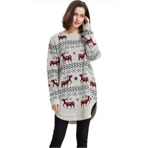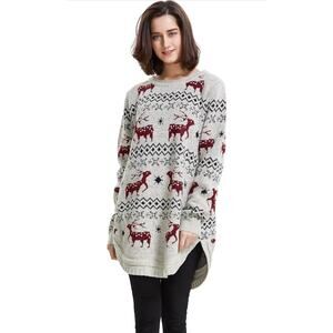 Shineflow Reindeer Fair Isle Oversized Sweater L Nordic Xmas Winter Knit Cozy