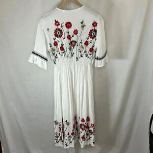 Shineflow Size Small Embroidered Midi Dress White Floral Boho Flowy Party Western