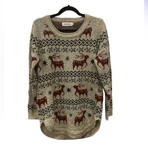 Shineflow Reindeer Patterned Knit Sweater Long Beige Red Small