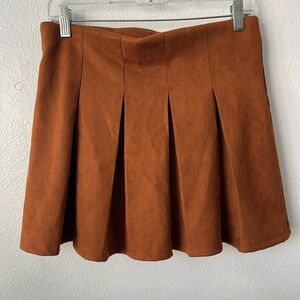 Shinestar A Line Skirt Women's Size Large Brown Cognac Pleated Mini Fall New