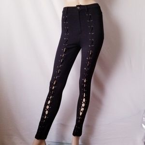 Shinestar Black Front Lace Up Skinny Jeggings Pant