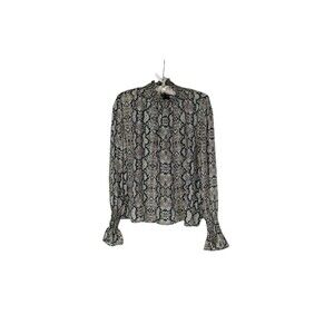 Shinestar Blouse 1X Snakeskin Print Mock Neck Long Sleeve Ruffle Reptilian Vibes
